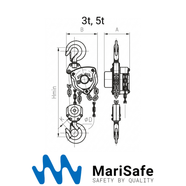 The MariSafe Chain Hoist 3 Ton is a compact manual chain hoist 3 ton designed for controlled lifting in marine and industrial environments, making it a reliable marine lifting chain hoist for shipboard maintenance and workshop use.